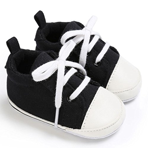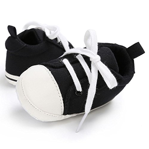 Tovadoo ズック靴 子供靴 乳児靴 ベビーシューズ 男女兼用 靴ひも コットン 通気性よい 履きやすい 履き心地良い 可愛い カッコイイ 通園 通学 旅行 シンプル カジュアル キッズ 11-13CM (11cm, ブラック)