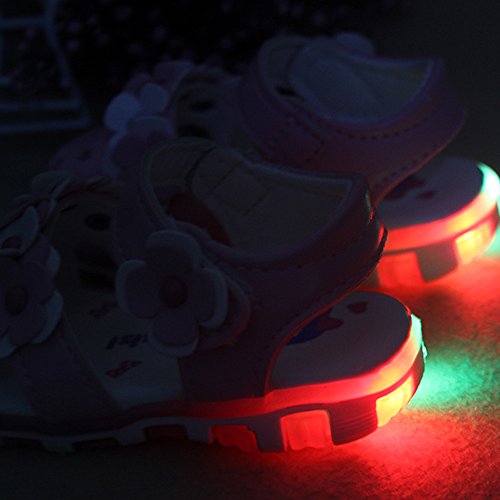 Tovadoo ベビーシューズ サンダル LED ライト付き 花柄 合皮 夏 履きやすい 履き心地良い つま先保護 歩行練習用 お姫様 可愛い おしゃれ 通学 旅行 パーティー 結婚式 女の子 キッズ