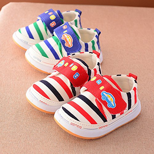 Tovadoo ベビーシューズ マジックテープ 縞模様 車柄 コットン製アッパー ゴム製靴裏 四季通用 滑り止め 履き心地良い つま先保護 歩行練習用 可愛い 通学 旅行 女の子 男の子 キッズ 11.5-14cm