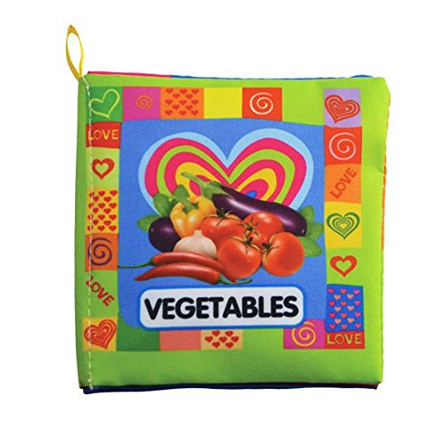 Tovadoo 布絵本 動物絵本 ファーストブック 音が鳴る絵本 野菜勉強 ソフト 布のおもちゃ 知育玩具 0-3歳 お出かけ絵本 知育玩具 着脱バンド付き プレゼント