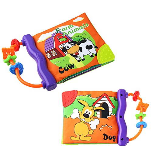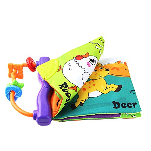 Tovadoo 布絵本 音が鳴る絵本 動物絵本 歯固め ソフト 布のおもちゃ 知育玩具 3ヶ月-3歳 知育玩具 お出かけ絵本 着脱バンド付き プレゼント