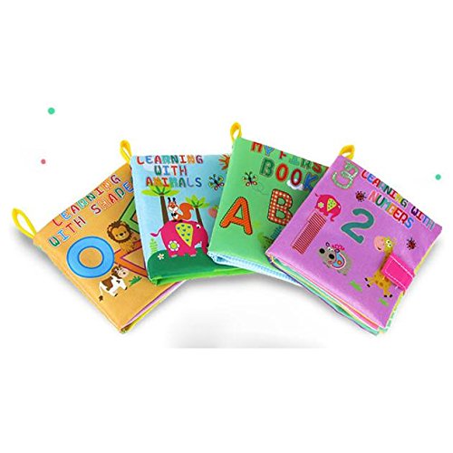 Tovadoo 布絵本 動物絵本 ファーストブック おもしろい絵本 多色 動物 アルファベット 数字 ソフト 布のおもちゃ 知育玩具 3ヶ月-3歳 お出かけ絵本 知育玩具 着脱バンド付き プレゼント