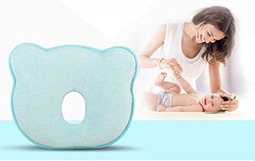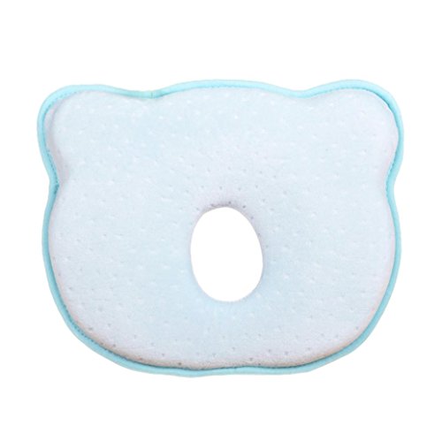 Tovadoo ベビー枕 新生児 小熊型 コットン 斜頭防止 絶壁頭防止 向き癖防止 汗取り 快眠 出産準備 出産祝い プレゼント 26*22*3.5CM (ブルー)