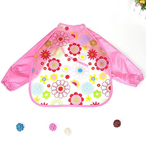 Tovadoo ベビー 食事用エプロン 長袖 キャラクター柄 EVA製 防水 水洗い簡単 出産祝い プレゼント 八色入 40cm*41cm