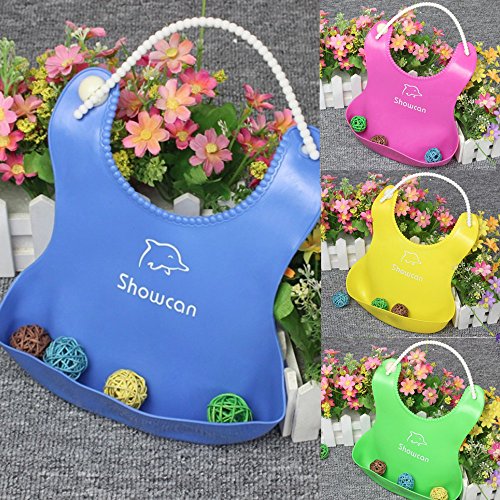 Tovadoo ベビー 食事用エプロン イルカ柄 TPE製 バンド調整可 防水 水洗い簡単 出産祝い プレゼント 四色入 27cmx22cm