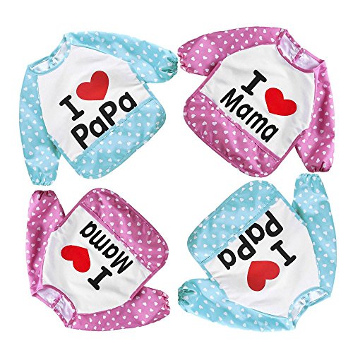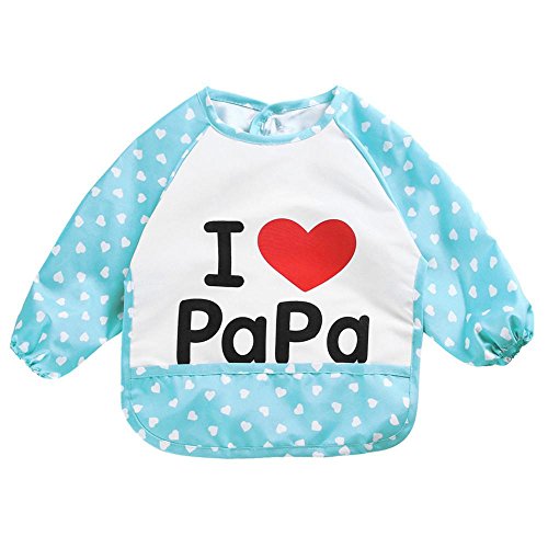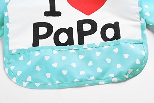 Tovadoo ベビー 食事用エプロン EVA製 防水 水洗い簡単 ラブパパ ラブママ ハート柄 キュート出産祝い プレゼント 二色入 1-3歳 (ブルー)