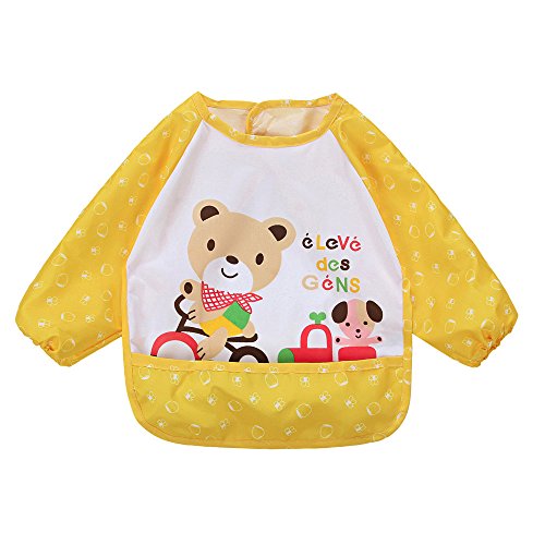 Tovadoo ベビー 食事用エプロン 長袖 EVA製 防水 水洗い簡単 動物柄 おもしろい キュート 出産祝い プレゼント 多色