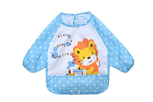 Tovadoo ベビー 食事用エプロン 長袖 EVA製 防水 水洗い簡単 動物柄 おもしろい キュート 出産祝い プレゼント 多色