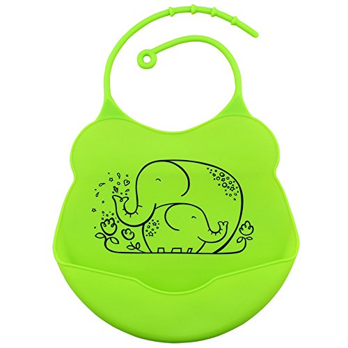 Tovadoo ベビー 食事用エプロン シリコーン製 防水 水洗い簡単 バンド調整可 緑 象柄 親子 キュート 出産祝い プレゼント 多色 20*20cm