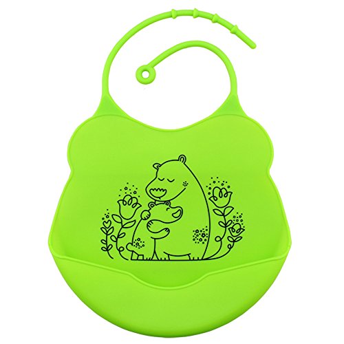 Tovadoo ベビー 食事用エプロン シリコーン製 防水 水洗い簡単 バンド調整可 河馬柄 親子 キュート 出産祝い プレゼント 多色 20*19cm
