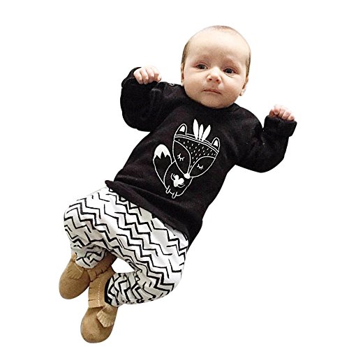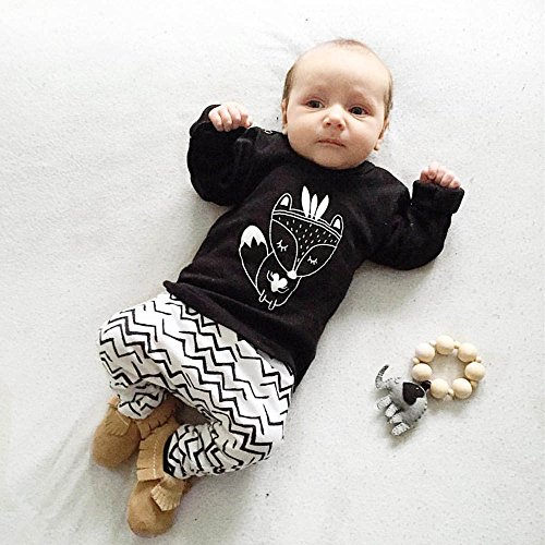 Tovadoo 子供服 ベビー服 男の子 トップス+サロペット セットアップ 長袖 秋冬 ギツネ柄 波柄 部屋着 保育園 旅行