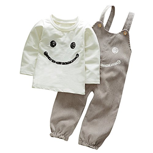 Tovadoo 子供服 ベビー服 男女共用 トップス+サロペット セットアップ 長袖 秋冬 多色 笑顔柄 カジュアル 部屋着 保育園(100cm,グレー)