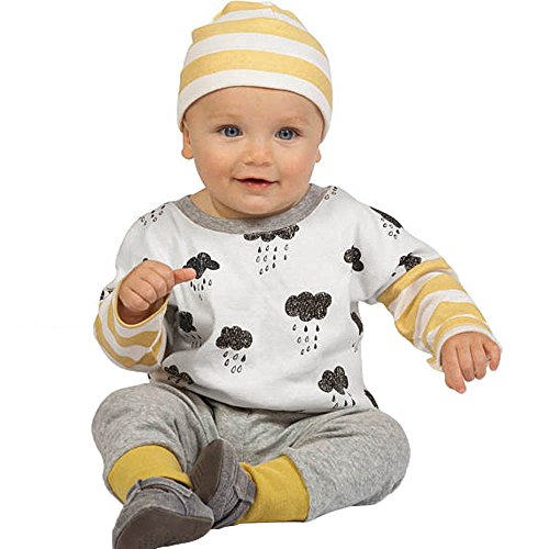 Tovadoo 子供服 ベビー服 男の子 トップス+ズボン+ハット セットアップ 長袖 秋冬 雲柄 縞模様 可愛い ファッション 部屋着 パジャマ
