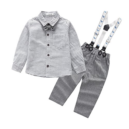 Tovadoo 子供服 ベビー服 男の子 トップス+サロペット フォーマル 長袖 秋冬 縞模様 ファッション 保育園 発表会 パーティー