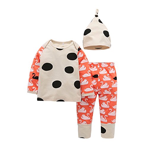 Tovadoo 子供服 ベビー服 男女共用 トップス+ズボン+ハット セットアップ 長袖 秋冬 白鳥柄 ドット柄 部屋着 保育園 旅行