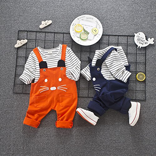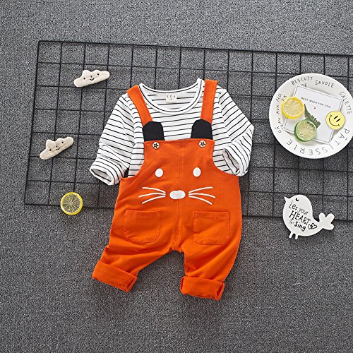 Tovadoo 子供服 ベビー服 男女共用 トップス+サロペット 多色 セットアップ 長袖 秋冬 縞模様 キャラクター柄 可愛い 部屋着 保育園