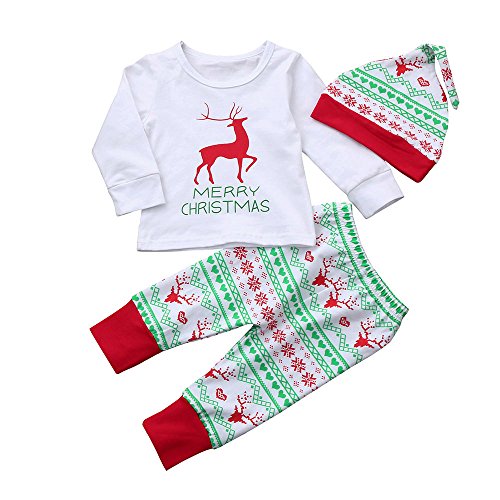 Tovadoo 子供服 ベビー服 女の子 上着+ズボン+帽子 秋冬 長袖 クリスマスセット ヘラジカ 雪柄 可愛い 姉妹揃い パーティー 部屋着 プレゼント