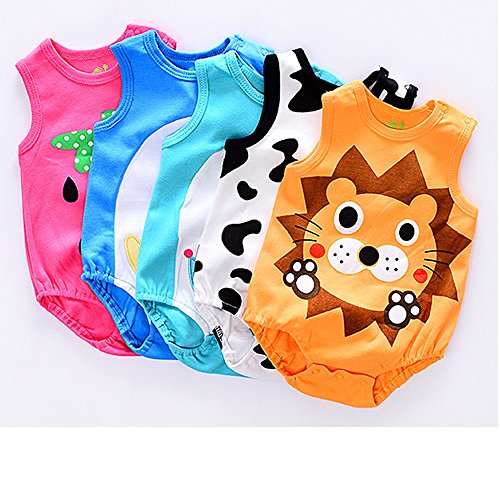 Tovadoo ベビー ロンパース ノースリーブ 夏 動物柄 キャラクター いちご コットン 可愛い 爽やか 遊園地 リゾート 旅行 室内 出産祝い 新生児 女の子 男の子
