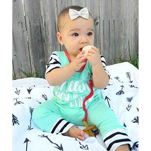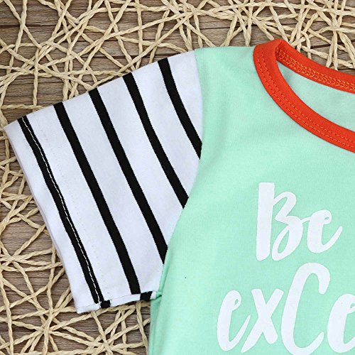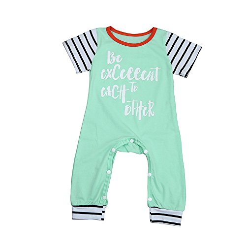 Tovadoo ベビー ロンパース 爬行服 半袖 グリーン アルファベット柄 夏 コットンブレンド 可愛い カッコイイ 爽やか 夏休み 遊園地 リゾート 旅行 室内 出産祝い 新生児 男の子 女の子