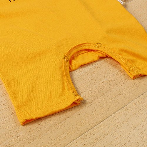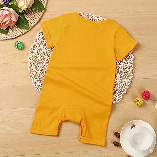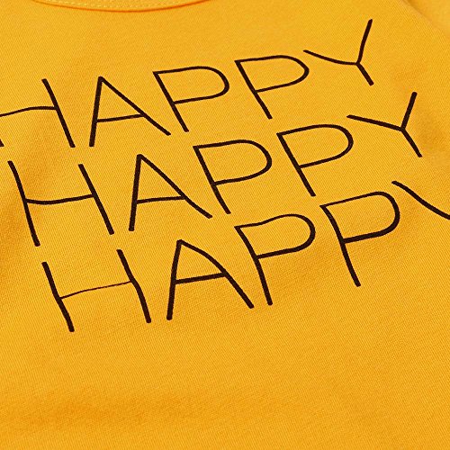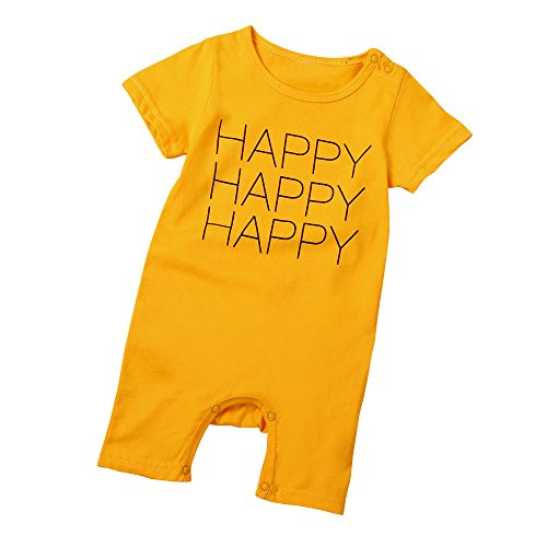 Tovadoo ベビー ロンパース 半袖 ハッピー アルファベット柄 元気イエロー 夏 コットンブレンド 可愛い カッコイイ ファッション 爽やか 夏休み 海遊び 遊園地 リゾート 旅行 室内 出産祝い 新生児 男の子 女の子