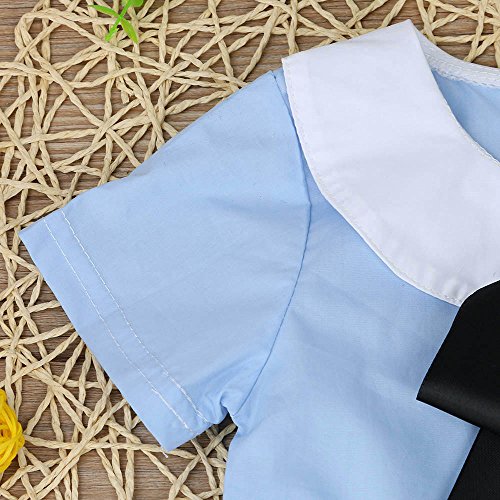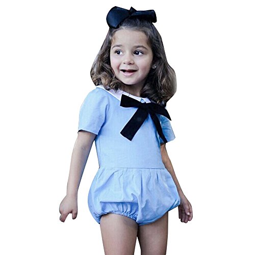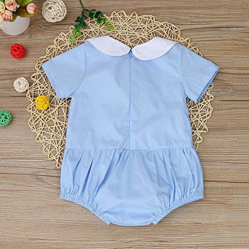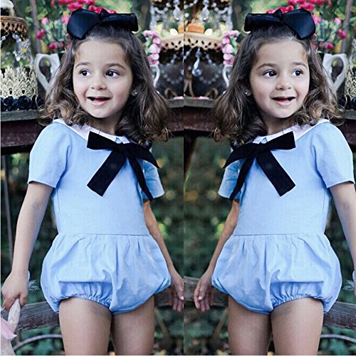Tovadoo キッズ ロンパース 半袖 リボン ジッパー ブルー コットンブレンド 可愛い ファッション 爽やか 夏休み 海遊び 遊園地 リゾート 旅行 パーティー 結婚式 出産祝い 新生児 女の子