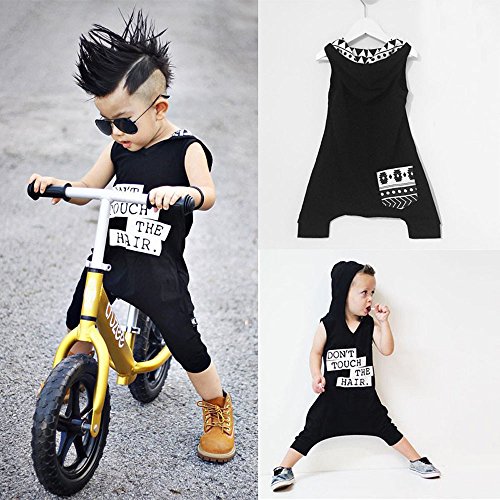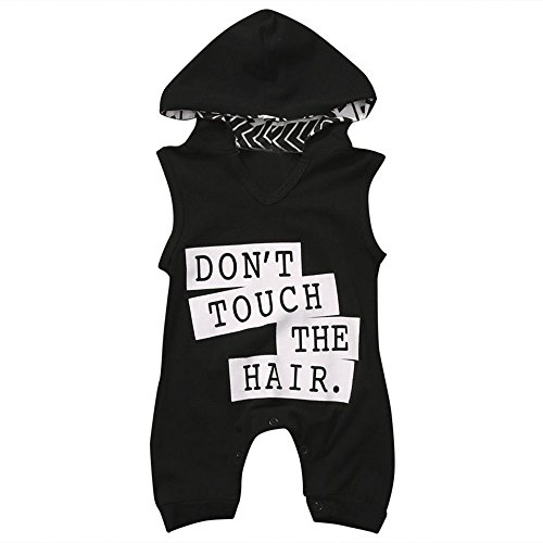 Tovadoo ベビー ロンパース ノースリーブ パーカー アルファベット柄 ブラック 夏 コットンブレンド カッコイイ ファッション 爽やか 遊園地 リゾート 旅行 室内 出産祝い 新生児 男の子