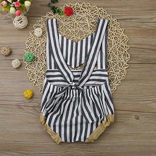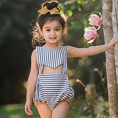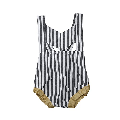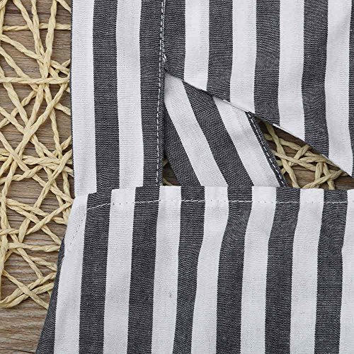 Tovadoo ベビー ロンパース ノースリーブ 縞模様 グレー コットンブレンド 可愛い ファッション 爽やか 夏休み 海遊び 遊園地 リゾート 旅行 室内 出産祝い 新生児 女の子