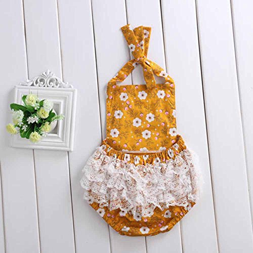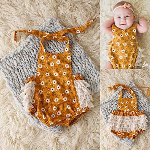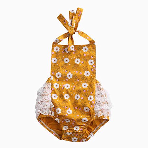 Tovadoo ベビー ロンパース ノースリーブ 菊柄 元気イエロー コットンブレンド 可愛い ファッション 爽やか 夏休み 海遊び 遊園地 リゾート 旅行 パーティー 結婚式 出産祝い 新生児 女の子
