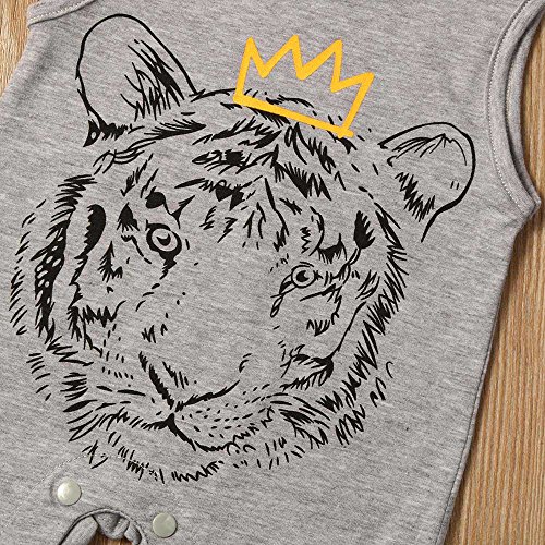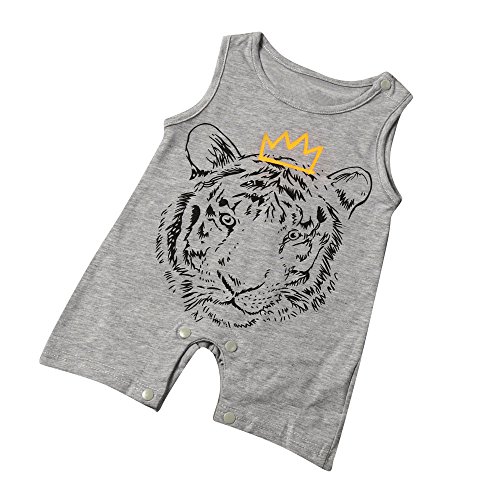 Tovadoo ベビー ロンパース ノースリーブ お虎柄 グレー 夏 コットンブレンド 可愛い カッコイイ ファッション 爽やか 夏休み 海遊び 遊園地 リゾート 旅行 室内 出産祝い 新生児 男の子 女の子