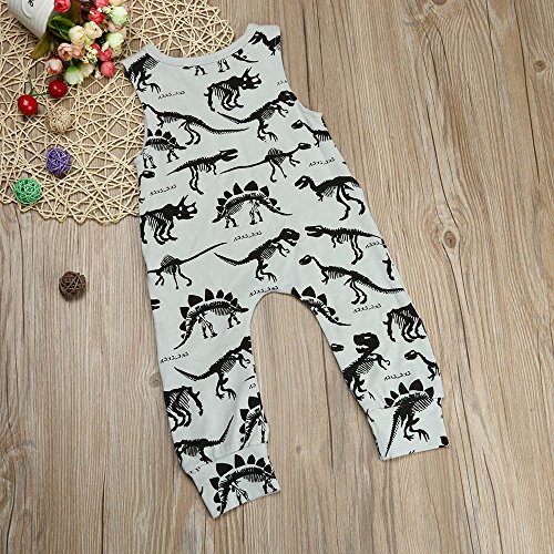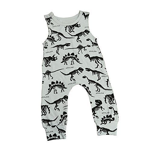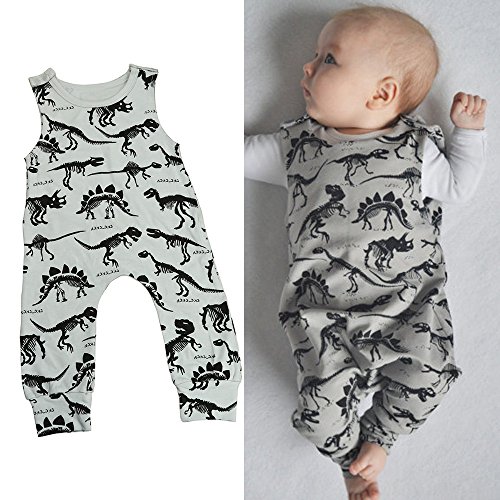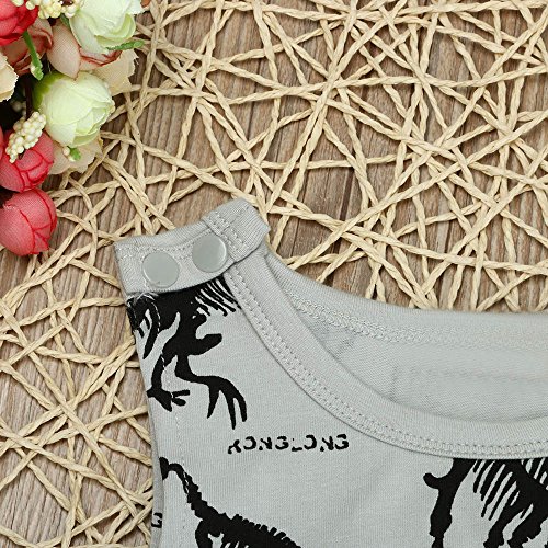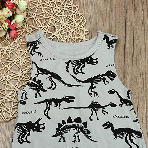 Tovadoo ベビー ロンパース 爬行服 ノースリーブ 恐竜柄 グレー 夏 コットンブレンド 可愛い カッコイイ 爽やか 遊園地 リゾート 旅行 室内 出産祝い 新生児 男の子