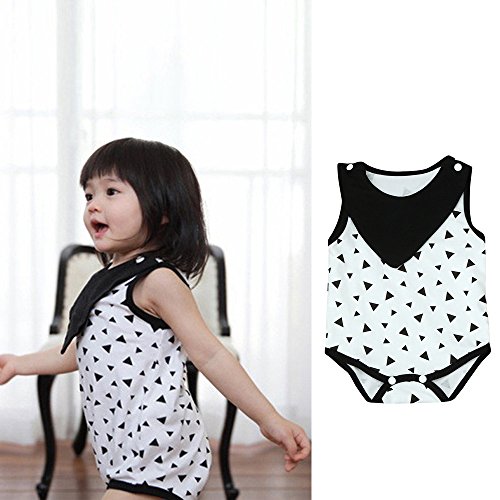 Tovadoo ベビー ロンパース ノースリーブ 涎掛け付き 三角形柄 コットンブレンド 可愛い ファッション 爽やか 夏休み 海遊び 遊園地 リゾート 旅行 パーティー 出産祝い 新生児 女の子