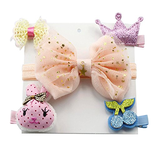 Tovadoo 女の子 子供用 5点セット 1*ヘアバンド+4*ヘアピン 動物 リボン 星 王冠 花 ハート 髪飾り 多色 かわいい おしゃれ 誕生日会 結婚式 イベント用