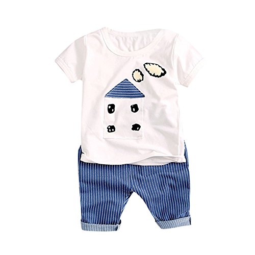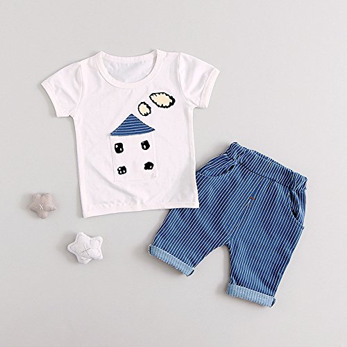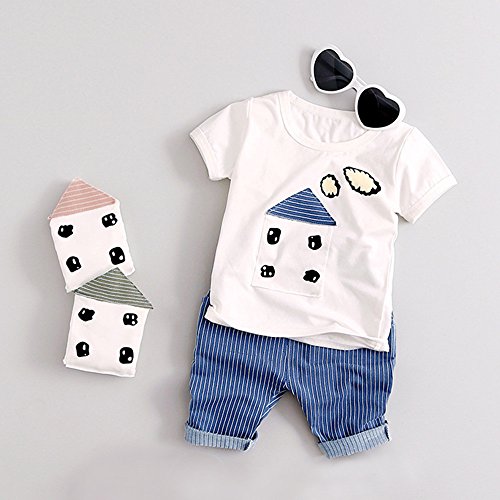 Tovadoo 子供服 二点セット 上着+ショートパンツ 半袖 お家柄 おもちゃ 縞模様 コットン 可愛い 爽やか おもしろい 通園 通学 リゾート 海遊び 出産祝い プレゼント 女の子 男の子 キッズ