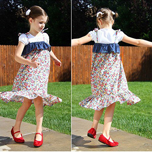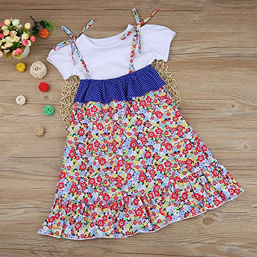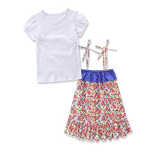 Tovadoo 子供服 二点セット Tシャツ+ドレス 半袖 花柄 コットン 可愛い おしゃれ 爽やか 通園 通学 旅行 リゾート 海遊び プレゼント 女の子 キッズ