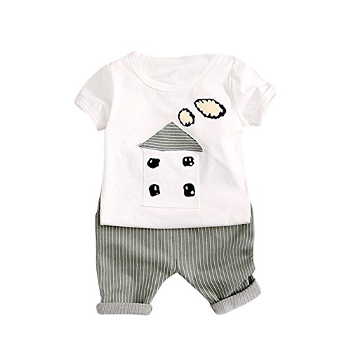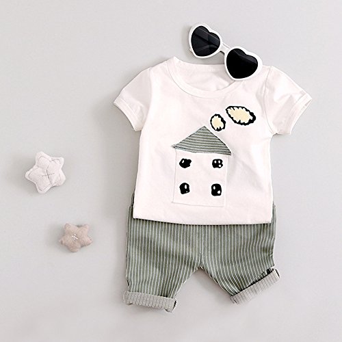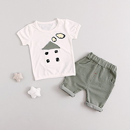 Tovadoo 子供服 二点セット 上着+ショートパンツ 半袖 お家柄 おもちゃ 縞模様 コットン 可愛い 爽やか おもしろい 通園 通学 リゾート 海遊び 出産祝い プレゼント 女の子 男の子 キッズ