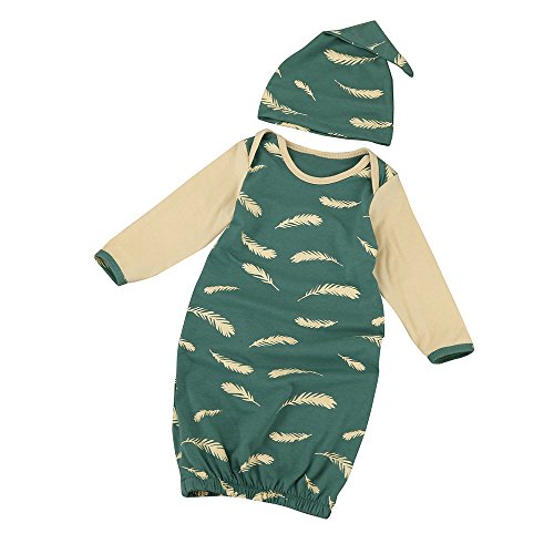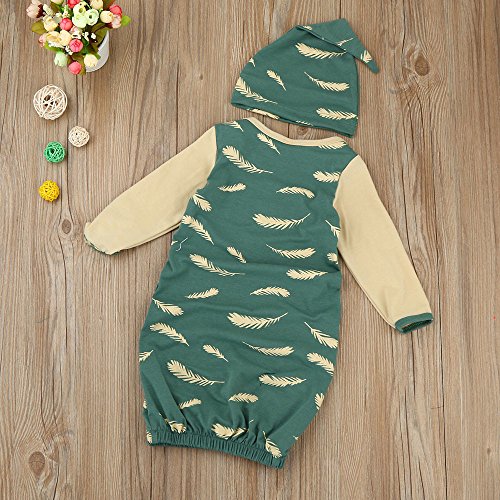 Tovadoo 子供服 ベビー服 新生児 シュラフ+ハット パジャマ 長袖 コットンブレンド 緑 羽柄 可愛い ファッション 部屋着