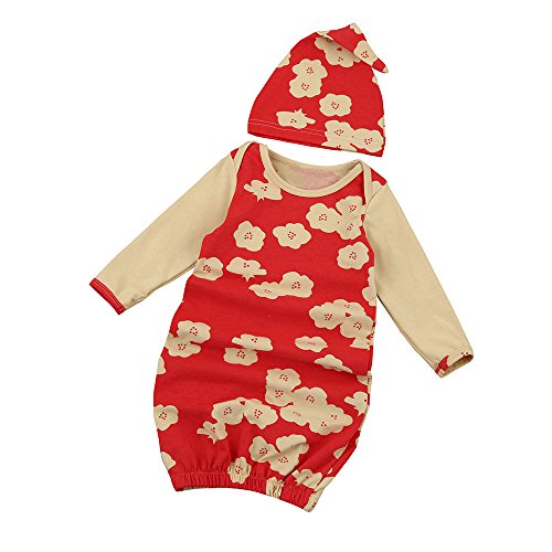 Tovadoo 子供服 ベビー服 新生児 シュラフ+ハット パジャマ 長袖 コットンブレンド 花柄 可愛い ファッション 部屋着