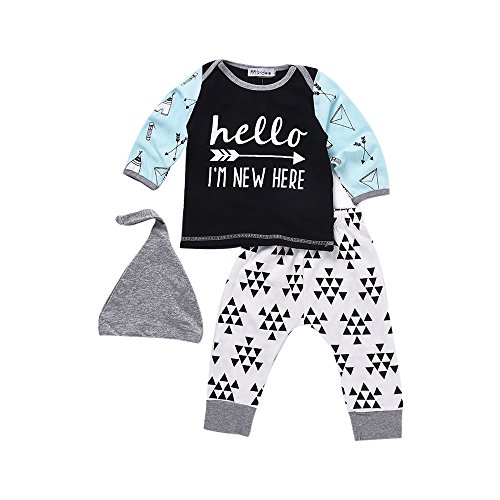 Tovadoo 子供服 ベビー服 新生児 上着+ズボン+ハット 長袖 コットンブレンド 幾何学模様 可愛い ファッション 部屋着 保育園
