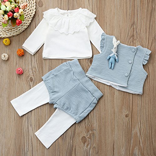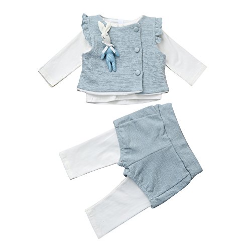 Tovadoo 子供服 ベビー服 女の子 トップス+ズボン+ベスト 秋冬 長袖 フレアスリーブ 可愛い襟 花柄 ウサギ付き キュート 姉妹揃い 保育園 旅行 プレゼント