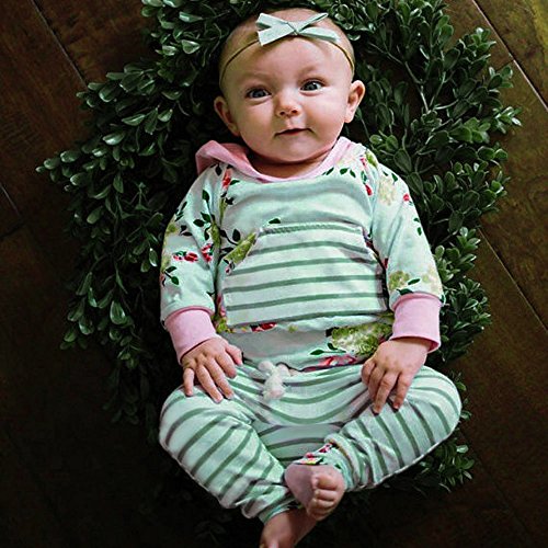 Tovadoo 子供服 ベビー服 女の子 パーカー+ズボン 二点セット ボーダー柄 木の葉 緑 長袖 秋冬 キュート ファッション 旅行 保育園