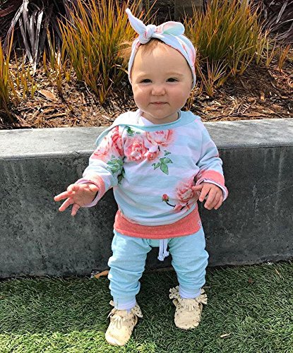 Tovadoo 子供服 女の子 パーカー+ズボン+ヘアバンド セットアップ 花柄 ボーダー柄 アンティーク調 長袖 秋冬 可愛い おしゃれ ファッション パーティー 保育園 旅行