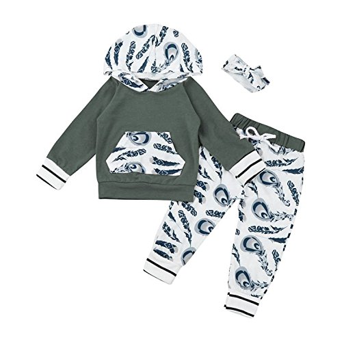 Tovadoo 子供服 男女共用 パーカー+ズボン+ヘアバンド セットアップ 羽柄 アート調 長袖 秋冬 可愛い ファッション パーティー 保育園 旅行