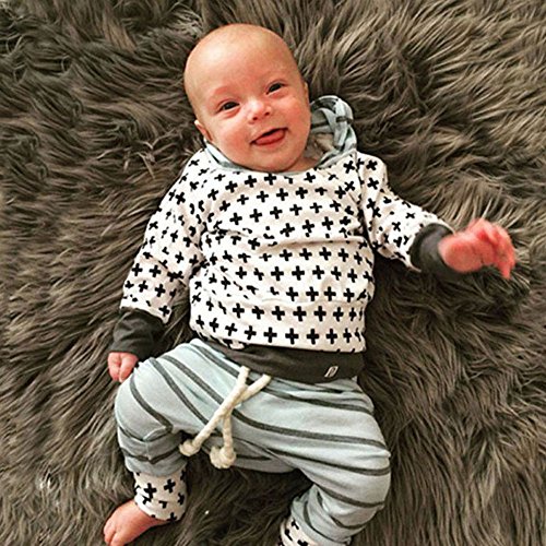 Tovadoo 子供服 ベビー服 男女共用 パーカー+ズボン 二点セット 長袖 秋冬 ボーダー柄 十字柄 カジュアル ファッション 保育園 旅行