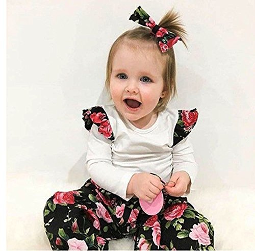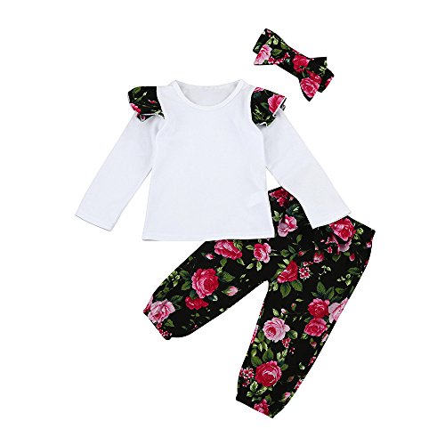 Tovadoo 子供服 ベビー服 女の子 トップス+ズボン+ヘアバンド セットアップ 長袖 秋冬 花柄 アンティーク調 おしゃれ キュート パーティー 保育園