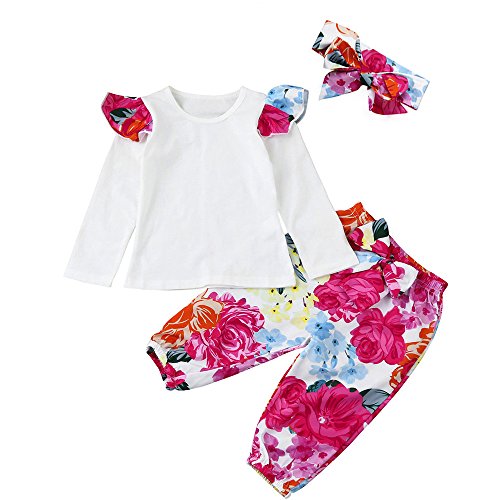 Tovadoo 子供服 ベビー服 女の子 トップス+ズボン+ヘアバンド セットアップ 長袖 秋冬 カラフル 元気少女 花柄 おしゃれ 可愛い パーティー 保育園