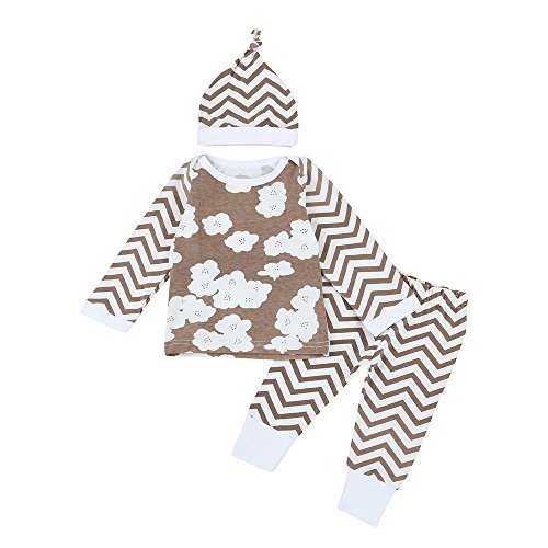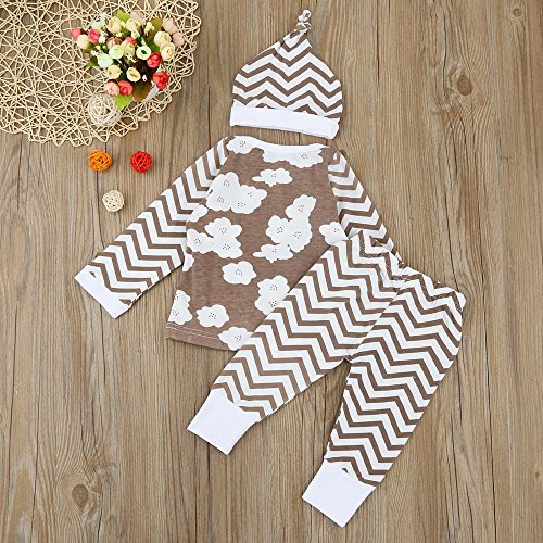 Tovadoo 子供服 ベビー服 男女共用 トップス+ズボン+ハット セットアップ 長袖 秋冬 カーキ ボーダー柄 雲柄 キュート パジャマ 部屋着 保育園