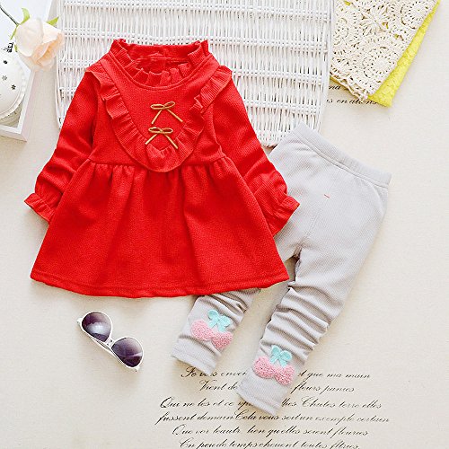 Tovadoo 子供服 ベビー服 女の子 トップス+ズボン セットアップ 長袖 秋冬 ワンピース 多色 サクランボ柄 お姫様 パーティー 保育園