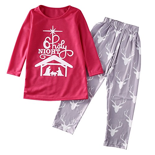 Tovadoo 子供服 女の子 トップス+ズボン セットアップ 長袖 秋冬 クリスマスセット ヘラジカ柄 可愛い ファッション 部屋着 保育園 小学校