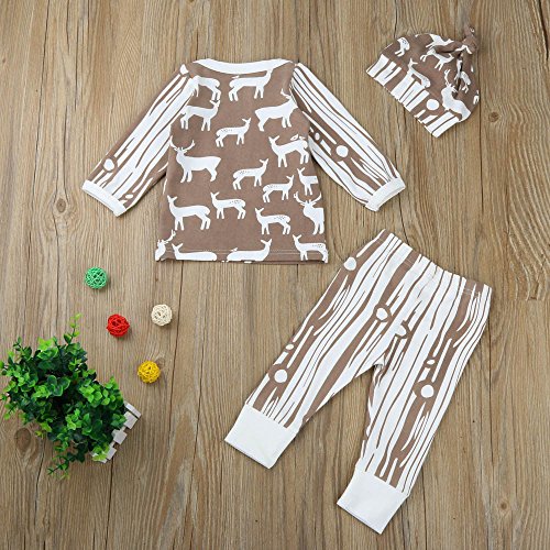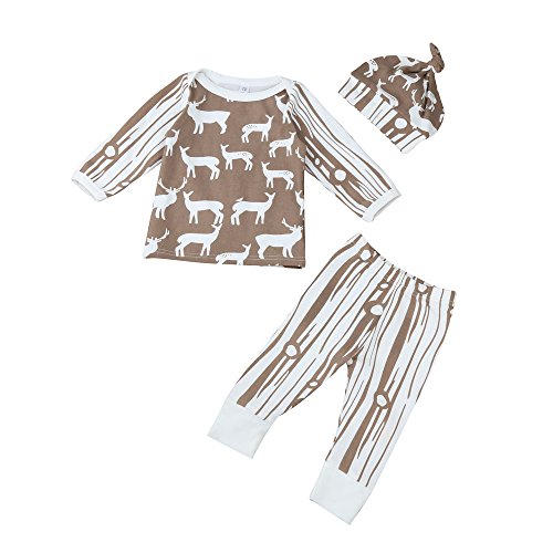 Tovadoo 子供服 ベビー服 男女共用 トップス+ズボン+ハット セットアップ 秋冬 長袖 動物柄 鹿柄 アート調 パジャマ 部屋着 保育園