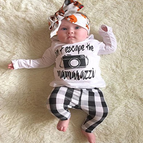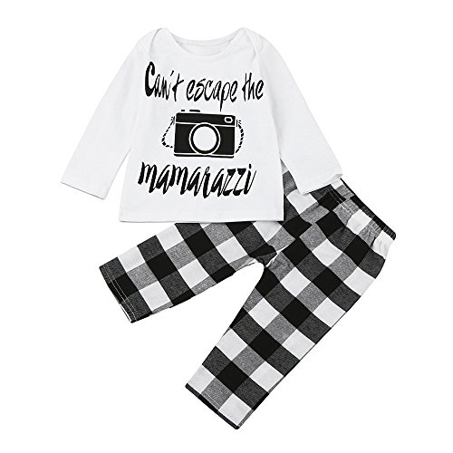 Tovadoo 子供服 ベビー服 女の子 トップス+ズボン セットアップ 秋冬 カメラ柄 チェック柄 可愛い ファッション 部屋着 保育園